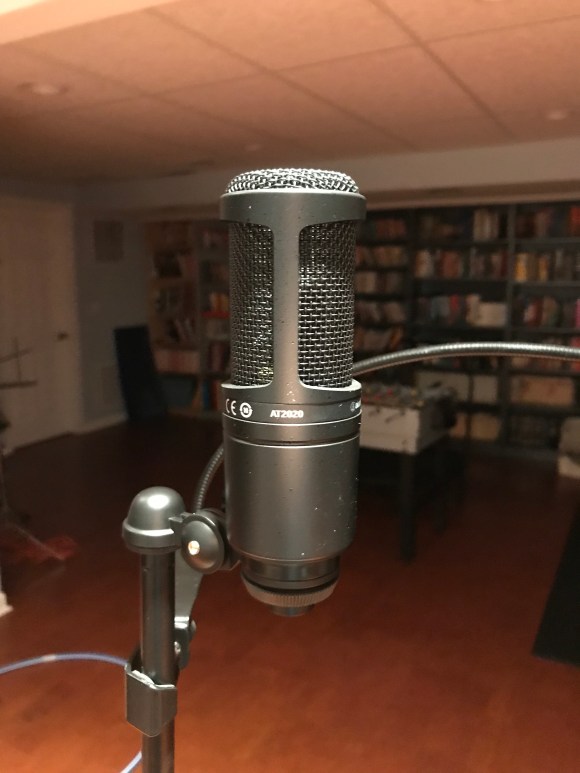 So I ordered an Audio Technica AT2020, which is one of the best rated microphones for vocals, and only costs $99. Amazon delivered it today (ah, the joys of oppressive tech giants), so I tried it out just now. Wow. I can sing straight into it, and it captures my vocals cleanly…and no sibilant problems. At all. This will be a great mic not only for my own vocals and for acoustic guitar, but it will be wonderful when I record female vocals (and if you know my stuff, you know how much I enjoy including those in recordings).