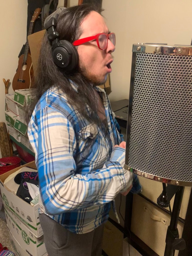 This means, for those of you keeping score, that our title track is very very close to finishing production. A month or so back, I had Eithne Inghean Mael Duin, aka Erin Mahoney, over here at the Oranwood home studio recording the part of Brangwin (and I and deeply annoyed that I neglected to get a recording photo, my bad), and I reworked my “final” vocals for Sir Gawain a couple weeks ago.